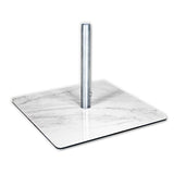 Classy white marble porcelain on a black steel base. Perfect fit for a Mills parasol.